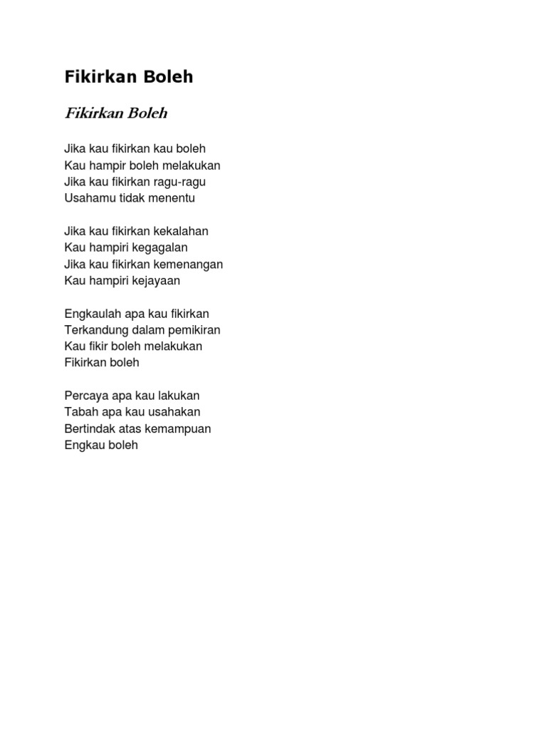 Jika kau fikirkan kemenangan. Fikirkan Boleh Lyrics by Amuk from the custom_album_5983779 album - including song video artist biography translations and more. Jika kau fikirkan kekalahan Kau hampiri kegagalan Jika kau fikirkan kemenangan Kau hampiri.